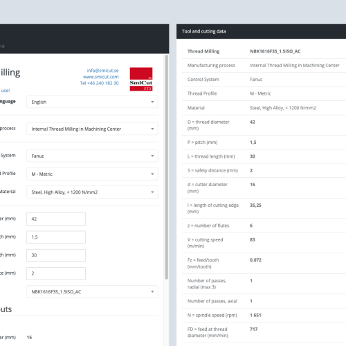 The most impressive was the extremely long tool life, 8 hours. The previous thread milling cutter managed 300 threads per cutter. They thought it was okey until SmiCut got 1300 threads per cutter. This is important because consumption was 600 thread mills per year. Now suddenly needed only 140 mills per year.
